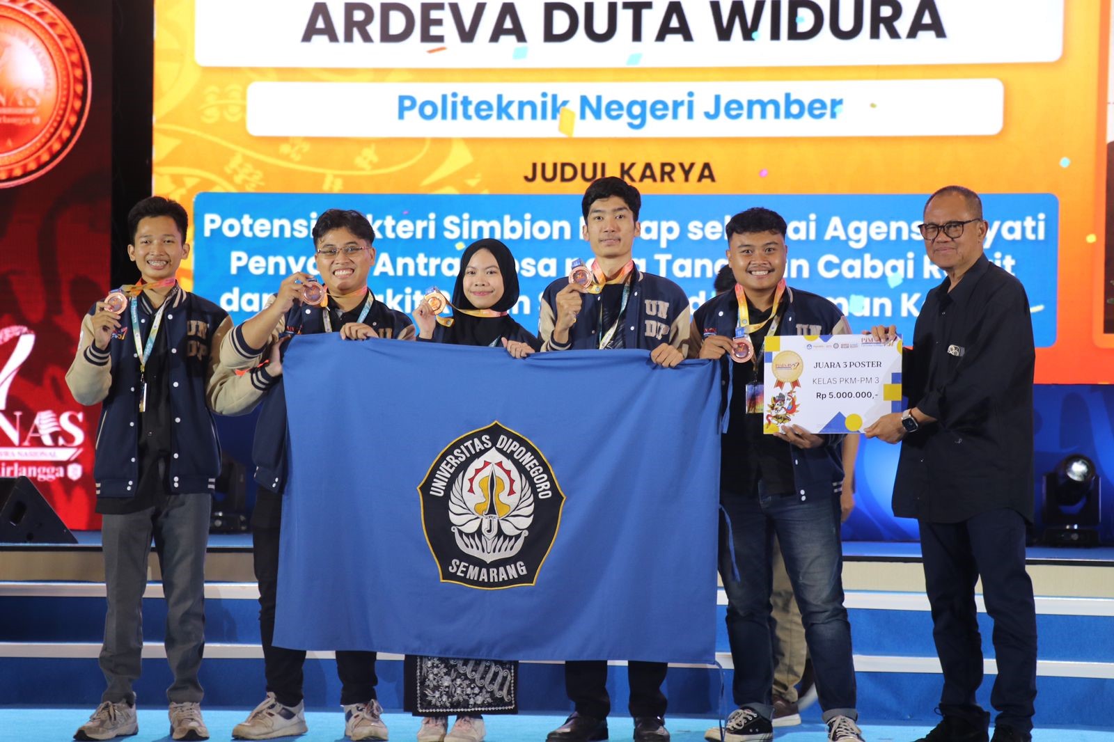 Tim Mahasiswa Universitas Diponegoro (UNDIP) berhasil meraih medali perunggu dalam Pekan Ilmiah Mahasiswa Nasional (PIMNAS) ke-37 yang bertepatan di Universitas Airlangga. Dalam kompetisi tersebut, mereka menang pada kategori poster di kelas PKM Pengabdian Masyarakat 3.