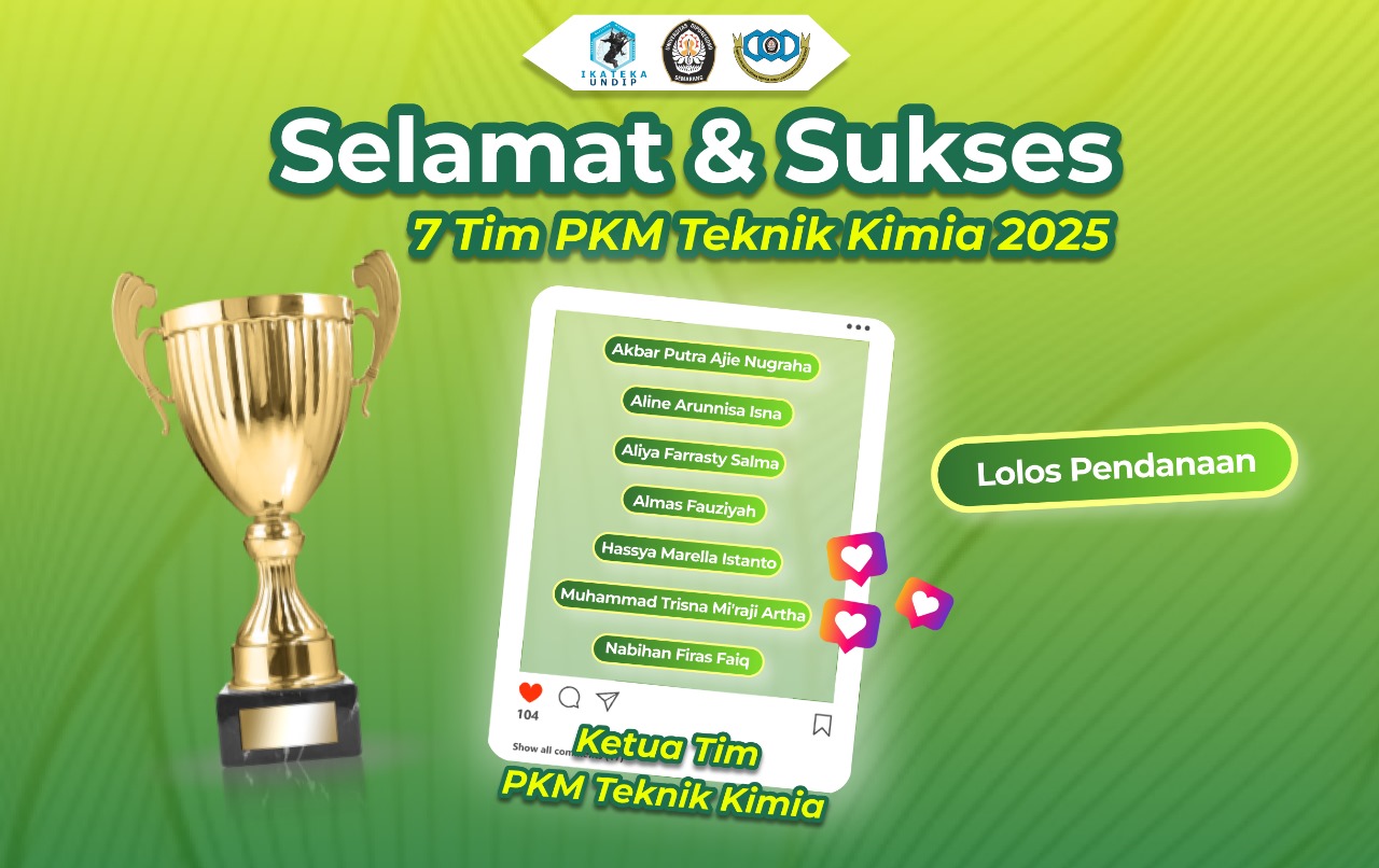Terima kasih atas kerja keras dan dedikasi para mahasiswa, dosen pembimbing, serta tim pendamping PKM Departemen Teknik Kimia yang telah mendukung capaian luar biasa ini.